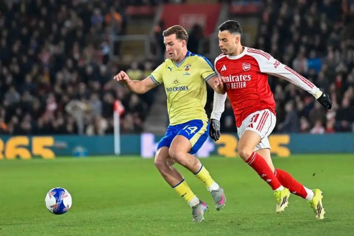 No jogo intenso e táctico, Southampton surpreendeu Mikel Arteta com uma estratégia eficaz e disciplinada que cortou as linhas de ataque do Arsenal. A equipa londrina lutou até ao fim, mas acabou por sucumbir perante a organização adversária. No entanto, o momento que mais deu que falar foi quando Gabriel Martinelli, numa tentativa de lançar rapidamente um livre, viu o árbitro bloquear-lhe o caminho. Irritado, o brasileiro empurrou o árbitro, um gesto que valeu um cartão amarelo, mas que muitos consideram ter merecido uma punição mais severa.