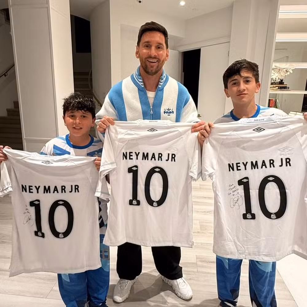 O craque de 34 anos partilhou uma imagem tocante nas redes sociais, mostrando Messi e os seus filhos segurando as camisetas icónicas com o número 10 que Neymar enviou diretamente de São Paulo. Cada peça foi assinada pelo próprio Neymar, que deixou mensagens pessoais para Messi, reforçando a conexão que ambos mantêm ao longo dos anos.