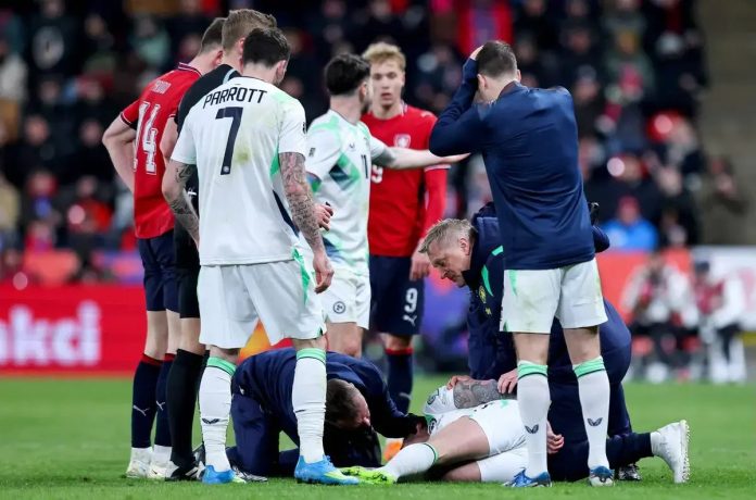 Na manhã de sexta-feira, um porta-voz da Associação de Futebol da Irlanda confirmou: “Sammie Szmodics foi transferido para o hospital ontem, tendo sofrido uma lesão na cabeça durante o tempo extra do play-off contra a Chequia. Após novos testes e um período de observação, ele foi devidamente discharged do hospital e continuará a sua recuperação sob os cuidados das equipas médicas da República da Irlanda e do Derby County.”