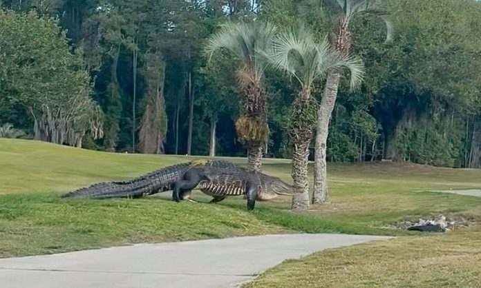 Imagina estar a jogar uma partida de golfe tranquilo na Flórida quando, de repente, um autêntico dinossauro vivo atravessa o campo à tua frente. Foi exactamente isso que aconteceu num campo de golfe em Jacksonville, dentro da base aérea naval da cidade, onde um enorme jacaré surpreendeu jogadores e espectadores.